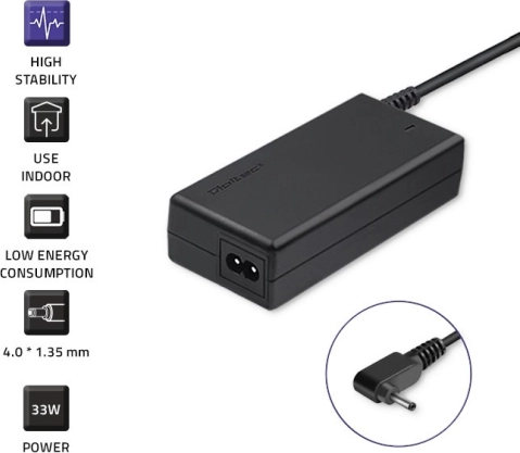 Niezawodny zasilacz sieciowy do laptopów ASUS o mocy 33 W, napięciu 19 V i prądzie 1,75 A z precyzyjną wtyczką 4,0 × 1,35 mm. Idealny jako główna lub zapasowa ładowarka do domu, biura i w podróży. Wysoka jakość wykonania oraz zintegrowane zabezpieczenia zapewniają stabilne i wydajne zasilanie Twojego laptopa.