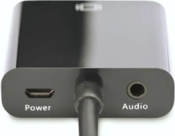 - Konwersja HDMI na VGA + audio: obraz przez VGA, dźwięk przez złącze 3,5 mm