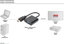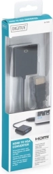 Uniwersalny adapter DIGITUS konwertuje sygnał HDMI na VGA i jednocześnie oferuje wyjście audio 3,5 mm. Wspiera Full HD 1080p, działa w trybie plug & play i nie wymaga sterowników – idealny do podłączania laptopów, odtwarzaczy i konsol do gier do starszych monitorów i projektorów z VGA.