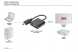Za pomocą tego kompaktowego adaptera łatwo połączysz nowoczesne źródła obrazu (laptopy, odtwarzacze Blu‑ray/DVD czy konsole do gier) ze starszymi wyświetlaczami. Sygnał wideo jest konwertowany z HDMI na analogowe VGA, natomiast dźwięk można wyprowadzić do głośników lub systemu AV przez złącze 3,5 mm.
