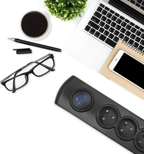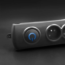 Podświetlany przełącznik umożliwia natychmiastowe odłączenie wszystkich urządzeń bez schylania się – idealny na podłodze przy biurku lub zestawie TV.