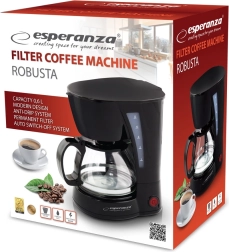 Ekspres do kawy Esperanza Robusta przynosi wygodę i efektywność do Twojej kuchni. Wyposażony w funkcję automatycznego wyłączania po 40 minutach od zakończenia cyklu, zapewnia bezpieczeństwo i oszczędność energii. Dzięki trwałemu, wielokrotnie używanemu filtrowi zmniejsza Twoje koszty korzystania.