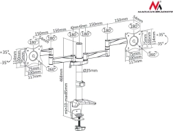 Stojak na dwa monitory marki Maclean oferuje uniwersalną możliwość montażu dla monitorów o przekątnej od 13" do 27", o ile ich waga nie przekracza 8 kg. Stojak jest odpowiedni dla różnych modeli monitorów i telewizorów LCD lub LED, wspierając standardy VESA.