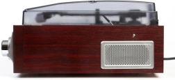Stylowy retro gramofon, który zachwyci miłośników winyli i nowoczesnych słuchaczy. Oferuje odtwarzanie płyt w 3 prędkościach 33/45/75 obr./min, zintegrowane radio, wejście AUX do podłączenia dodatkowych źródeł oraz wbudowane głośniki. Oczywiście posiada przezroczystą pokrywę antykurzową i eleganckie drewniane wykończenie.