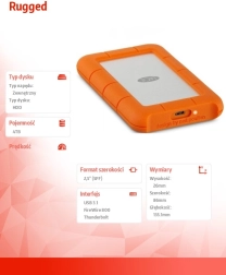 Zewnętrzny dysk LaCie Rugged USB‑C 4TB został zaprojektowany dla osób poszukujących wytrzymałej pamięci masowej o dużej pojemności. Jego kompaktowa konstrukcja o wymiarach 86 mm x 135,1 mm x 26 mm i masie zaledwie 400 g umożliwia łatwe przenoszenie. Dzięki pojemności 4 TB masz dość miejsca na wszystkie pliki, w tym zdjęcia, filmy i dokumenty.