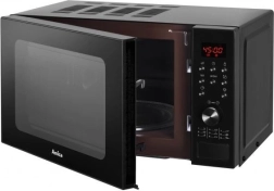 Kompaktowa kuchenka mikrofalowa AMICA AMGF20E1GB oferuje pojemność 20 l, sterowanie elektroniczne, kwarcowy grill 900 W oraz 9 automatycznych programów do szybkiego i wygodnego przygotowywania potraw. Dzięki trybowi kombinowanego grzania (Combigrill), funkcji Quick Start, 5 poziomom mocy oraz rozmrażaniu wagowemu osiągniesz perfekcyjne rezultaty na co dzień. Nie brakuje blokady rodzicielskiej, Multi Waves System dla równomiernego podgrzewania ani opóźnionego startu.