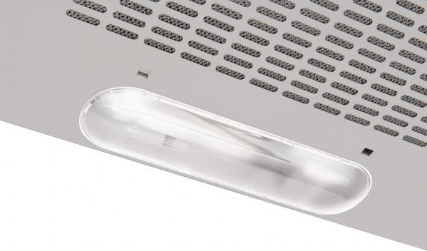 Niski profil i białe wykończenie oszczędzają miejsce i pasują do większości kuchni. Idealny wybór do mniejszych przestrzeni z możliwością wyciągu lub recyrkulacji.