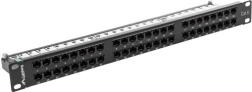 Panel rozdzielczy z 48 portami typu RJ-45 kategorii 6 umożliwia efektywną organizację okablowania w szafach rackowych 19" i jest idealny dla szybkich sieci telekomunikacyjnych.