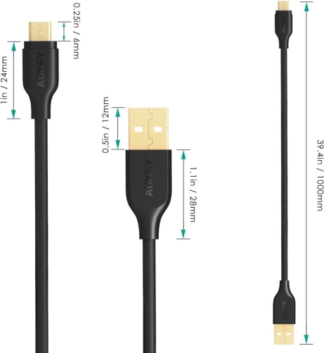 Niezawodny kabel micro USB AUKEY do ładowania i transferu danych. Wspiera Quick Charge 3.0/2.0/1.0, oferuje prędkość do 480 Mb/s, ma pozłacane złącza i wytrzymałą konstrukcję do codziennego użytkowania.