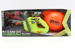 Ta dziecięca piła łańcuchowa Tuff Tools jest idealna dla dzieci, które lubią bawić się w mechanika lub drwala. Po naciśnięciu bocznego przycisku piła „startuje”, a spust uruchamia ruch łańcucha oraz efektowne odgłosy cięcia, które dodają zabawie autentyczności.