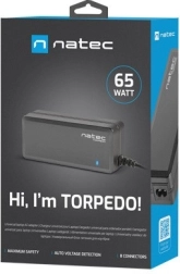 NATEC Torpedo UNI‑70 zapewnia uniwersalne rozwiązanie ładowania dla laptopów różnych marek o mocy do 65 W. Dzięki zestawowi 8 końcówek łatwo dopasujesz złącze i napięcie wyjściowe, więc możesz używać jednego zasilacza do wielu urządzeń w domu, biurze i w podróży.
