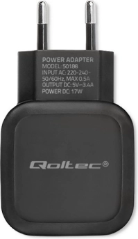Qoltec podwójna ładowarka USB oferuje niezawodne ładowanie Twoich urządzeń z maksymalną mocą 17W. Wyposażona w dwa porty USB oraz kabel USB-C, umożliwia szybkie i efektywne ładowanie różnych urządzeń elektronicznych.