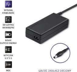Ten zasilacz marki Qoltec to idealny wybór do bezpiecznego zasilania szerokiej gamy urządzeń elektronicznych, takich jak monitory, routery, telewizory, zabawki, ładowarki akumulatorów do elektronarzędzi, drukarki, skanery oraz urządzenia kasowe. Wyróżnia się kompaktowym rozmiarem i łatwą instalacją bezpośrednio w gniazdku.