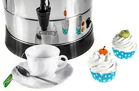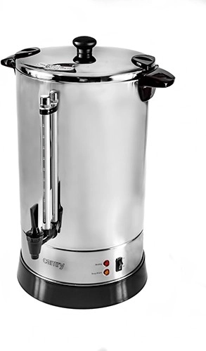 Dystrybutor gorącej wody CR 1259 ze stali nierdzewnej umożliwia podgrzewanie wody oraz utrzymywanie jej temperatury. Jest niezastąpiony podczas przerw kawowych na konferencjach, a także na różnego rodzaju spotkaniach biznesowych, naukowych i towarzyskich. Dzięki mobilności idealnie sprawdza się przy organizacji wydarzeń. Podgrzewacz wody Camry jest łatwy i wygodny w użyciu, a także zapewnia bezpieczeństwo podczas użytkowania (nienagrzewające się uchwyty i kranik).