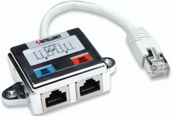 - Umożliwia udostępnienie dwóch portów RJ-45 za pomocą jednego kabla Cat5