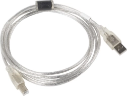 Wysokiej jakości przezroczysty kabel USB 2.0 Lanberg, idealny do podłączenia komputera z drukarką, skanerem i innymi urządzeniami peryferyjnymi. Dzięki zastosowaniu rdzenia ferrytowego przesyłany sygnał zachowuje oryginalną jakość.