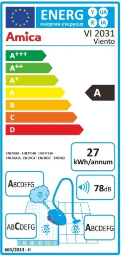 Odkurzacz posiada sygnalizację pełnego worka, która informuje, kiedy należy wymienić worek, oraz mechaniczne zabezpieczenie przed pracą bez worka, co chroni silnik przed uszkodzeniem. Z klasą energetyczną A ten odkurzacz jest nie tylko wydajny, ale także przyjazny dla środowiska.