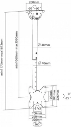 Sufitowy uchwyt do LCD/LED 23–42 cali, 50 kg, regulowany, czarny