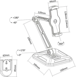 Uniwersalny uchwyt ramienny do tabletów, który umożliwia wygodne ustawienie na biurku lub montaż na ścianie. Kompatybilny z większością tabletów o przekątnej od 4,7'' do 12,9'' i oferuje łatwą regulację orientacji i kąta nachylenia.