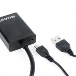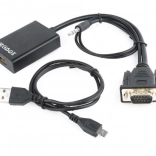 Konwersja analogowego sygnału VGA na cyfrowe HDMI z wbudowanym złączem audio 3,5 mm, obsługa rozdzielczości do 1920x1080.