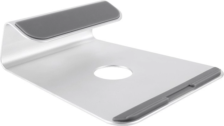 Elegancki aluminiowy stojak na laptop podnosi ekran do poziomu oczu, poprawiając ergonomię pracy. Oferuje ergonomiczne podwyższenie, otwartą konstrukcję dla lepszego chłodzenia, antypoślizgowe podkładki silikonowe oraz stabilność do 5 kg. Odpowiedni dla laptopów 11–15", w tym serii MacBook, a także dla tabletów.