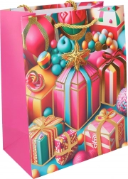Stylowa świąteczna torebka prezentowa w rozmiarze S (23 × 18 × 10 cm) do szybkiego i eleganckiego pakowania prezentów. Oferuje 4 świąteczne warianty, jest solidna, praktyczna i odpowiednia na małe i średniej wielkości prezenty.
