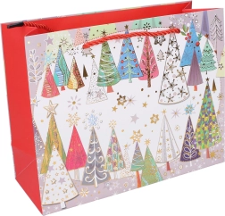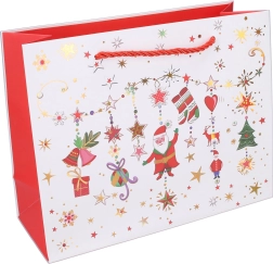 Elegancka torebka prezentowa w rozmiarze S do świątecznego pakowania. Idealna na mniejsze prezenty i kosmetyki, a solidne uchwyty i wysokiej jakości papier zapewniają łatwe i bezpieczne przenoszenie. Dostępna w 4 świątecznych wariantach, które podkreślą bożonarodzeniową atmosferę i nadadzą prezentom stylowe opakowanie.