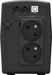Nowoczesny panel LCD zapewnia natychmiastowy podgląd napięcia wejściowego i wyjściowego, stanu baterii oraz obciążenia. Interfejs USB z HID umożliwia komunikację bez instalacji sterowników z większością systemów operacyjnych dla automatycznego wyłączania i monitoringu. Wygodną obsługę zapewnia inteligentny, wielofunkcyjny przycisk – pojedyncze kliknięcie włącza podświetlenie, podwójne wycisza alarm, a długie przytrzymanie steruje wyjściem.