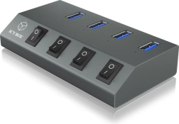 Każdy port ma oddzielny wyłącznik, dzięki czemu wygodnie zarządzisz podłączonymi urządzeniami bez odpinania kabli. Przy użyciu dołączonego zasilacza 5 V/4 A hub działa jako aktywna ładowarka z obsługą USB Battery Charging 1.2 (BC 1.2) – idealna do szybkiego ładowania telefonów i tabletów.