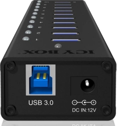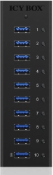 Rozszerz swój komputer o 10 portów USB 3.0 z prędkością do 5 Gb/s. Ten aktywny hub Icy Box z wytrzymałą aluminiową obudową oferuje stabilne zasilanie zewnętrzne DC 12 V, dedykowany port ładowania 5 V / 2,1 A (BC 1.2), Plug & Play oraz Hot Swap dla bezproblemowego użytkowania w domu i w biurze.
