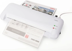 Laminator A4 to kompaktowe i wydajne urządzenie, idealne do użytku w małej firmie lub gospodarstwie domowym. Zapewnia bezpieczną ochronę dokumentów i zdjęć.