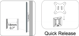 Uchwyt charakteryzuje się eleganckim designem i wysoką jakością wykonania. Dzięki otworom w standardzie VESA (75x75, 100x100) możliwe jest łatwe przymocowanie monitorów lub telewizorów o przekątnej do 27 cali, lub większych, jeśli ich waga nie przekracza 18 kg.