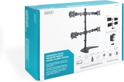 Stojak na cztery monitory to doskonały wybór do organizacji stanowiska pracy i zwiększenia produktywności. Możesz podłączyć do czterech monitorów lub telewizorów dzięki otworom w standardzie VESA (75x75, 100x100, 200x100), co ułatwia montaż ekranów o przekątnej do 27 cali.