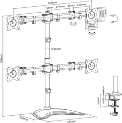 Możliwość obrotu o 360° i pionowej regulacji do 45° zapewnia maksymalną elastyczność ustawienia monitorów.
