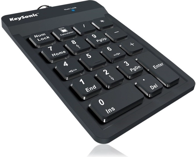Ta klawiatura numeryczna jest wykonana z silikonu, co zapewnia jej pełną ochronę przed kurzem oraz wodoodporność zgodnie z normą IP64. Posiada wbudowany wielofunkcyjny przycisk służący do uruchamiania kalkulatora w systemie Windows.
