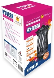 Wydajna lampa przeciw owadom o mocy 18 W i klasie szczelności IPX4 do użytku wewnątrz i na zewnątrz. Połączenie światła UV-A 365 nm oraz wysokonapięciowej siatki skutecznie eliminuje komary, muchy i muszki owocówki. Wytrzymała metalowa i niepalna konstrukcja z ABS, cicha praca, bez chemii oraz łatwa pielęgnacja dzięki wyjmowanej misce.