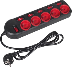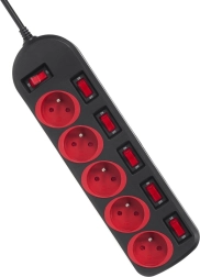 Praktyczna listwa zasilająca z 5 gniazdami i indywidualnymi wyłącznikami dla każdego gniazda. Oferuje główny podświetlany wyłącznik, zabezpieczenie dziecięce oraz przewód 1,5 m dla bezpiecznego i wygodnego zasilania wielu urządzeń w domu, biurze i warsztacie.