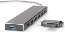 Hub DIGITUS USB 3.0 to idealne uzupełnienie każdego miejsca pracy. Umożliwia podłączenie i użycie aż siedmiu urządzeń USB jednocześnie, co oznacza, że korzystanie z wielu urządzeń wejściowych lub przenośnych magazynów nie będzie żadnym problemem. Dzięki technologii USB 3.0 przesyła dane z prędkością do 5 Gbps, co zapewnia szybką wymianę danych.