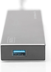 Hub DIGITUS USB 3.0 charakteryzuje się wysokiej jakości aluminiową obudową, która ma elegancki i ponadczasowy design, pasujący do każdego biurka.