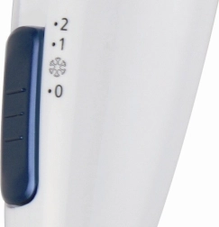 - Trzystopniową regulację temperatury, która umożliwia bezpieczniejsze suszenie włosów zniszczonych.