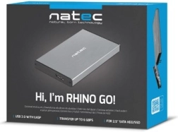 NATEC Rhino Go to wysokiej jakości zewnętrzna obudowa dla dysków 2,5", łącząca wysoką prędkość, uniwersalną kompatybilność i trwałą konstrukcję. Dzięki USB 3.0 z obsługą UASP osiągniesz wyraźnie szybsze transfery i mniejsze obciążenie procesora.