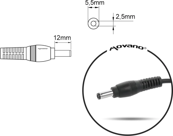 - 5,5 × 2,5 mm (średnica zewnętrzna × wewnętrzna)