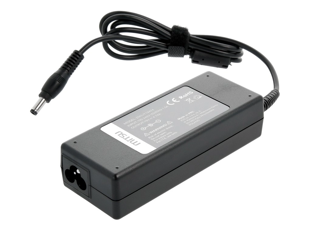 - Kompatybilność – do laptopów z wtykiem 5,5 × 2,5 mm i wymaganym zasilaniem 19 V/4,74 A.