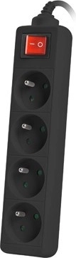 Czarna listwa zasilająca 1,5 m z 4 gniazdami i wyłącznikiem