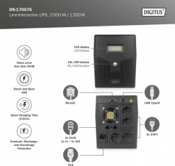 UPS Line-Interactive firmy Digitus oferuje kompaktowe wymiary oraz zapewnia wysoką niezawodność i wydajność dzięki sterowaniu mikroprocesorowemu. Jest łatwy w obsłudze i zapewnia skuteczną ochronę domowym lub biurowym systemom komputerowym przed utratą i uszkodzeniem danych.