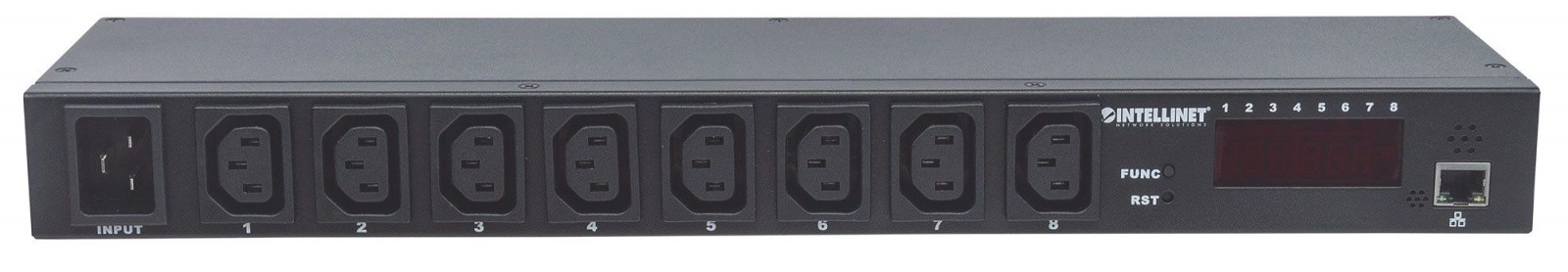 Kompaktowa PDU 1U do szafy 19" oferuje osiem wyjść C13 do łatwego zasilania serwerów i urządzeń sieciowych.