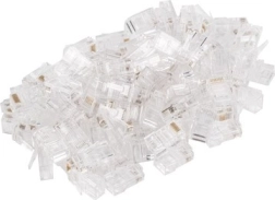 Ten zestaw zawiera 100 sztuk nieekranowanych złączy RJ-45 kategorii 5E, idealnych do kabli LAN UTP. Dzięki technologii potrójnych ząbków złącza można stosować zarówno do przewodów jednodrutowych, jak i linki wielodrutowej.