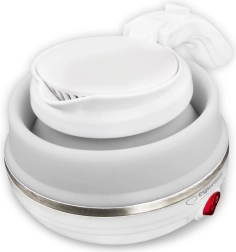 Silikonowy, składany korpus czajnika łatwo złożysz do kompaktowych rozmiarów. Idealny do walizki, plecaka i na niewielki blat kuchenny.
