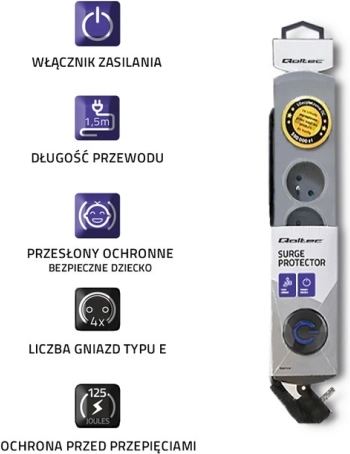O bezpieczeństwo dbają zabezpieczenia przeciwprzepięciowe z warystorem, które chronią elektronikę przy nagłych skokach napięcia, zabezpieczenia przed dziećmi we wszystkich gniazdach oraz niepalny materiał PP. Praktyczne rozwiązania z możliwością montażu do mebli oraz prowadzenia lub owijania nadmiaru przewodu pomagają utrzymać porządek i wolną przestrzeń.