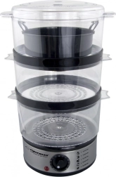 Trzy transparentne poziomy pozwalają przygotować różne rodzaje produktów jednocześnie – warzywa, ryby, ryż czy mięso – bez przenoszenia zapachów. Minutnik i czytelny panel sterowania dają pełną kontrolę nad procesem gotowania, a kompaktowa konstrukcja oszczędza miejsce na blacie kuchennym.